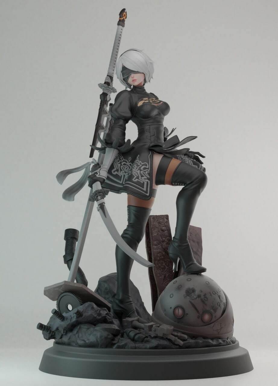Cada detalle de este diorama de 2B, ha sido pintado con máxima precisión para garantizar una impresión en 3D de calidad excepcional.